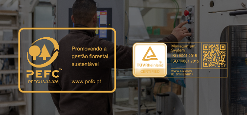 A nossa qualidade é certificada: PEFC, ISO 9001 e ISO 14001